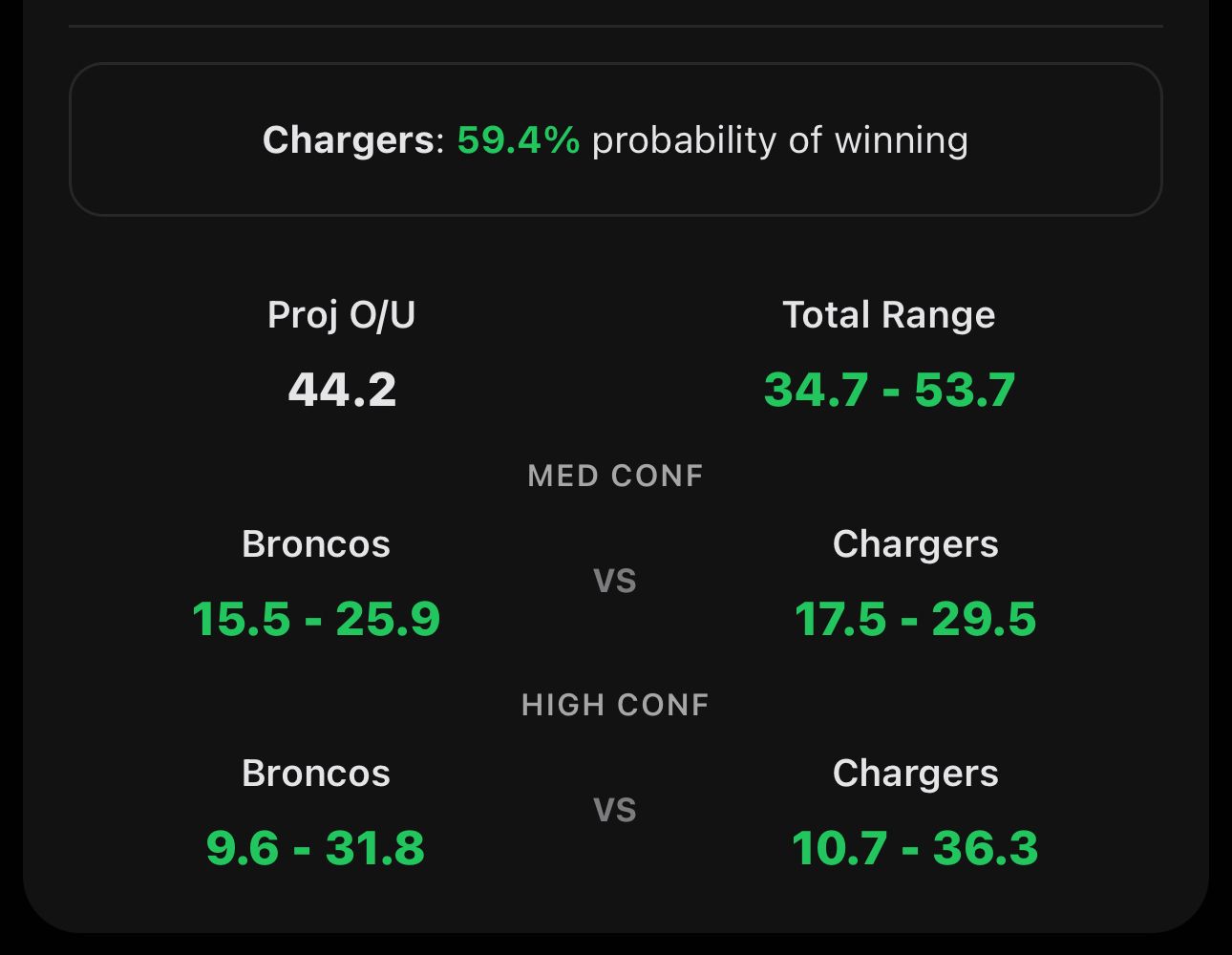 We hit 50% for week 3, with a omitted picks for the Vikings vs Bengals game and Commanders game. When a starting QB gets injured, we omit the pick as the data used for projection assumes the starting QB (Joe Burrow & Jayden Daniels) is going to be the QB. Due to his injury, we mark this in the app and warn users against betting this game.
